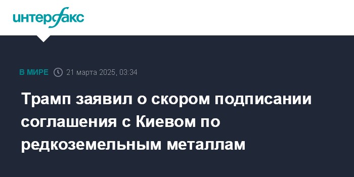 Москва. 21 марта. INTERFAX.RU - Президент США Дональд Трамп считает, что соглашение с Украиной по редкоземельным металлам будет подписано в ближайшее время.