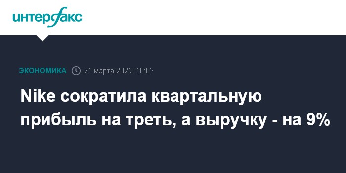 Nike сократила квартальную прибыль на треть, а выручку - на 9%