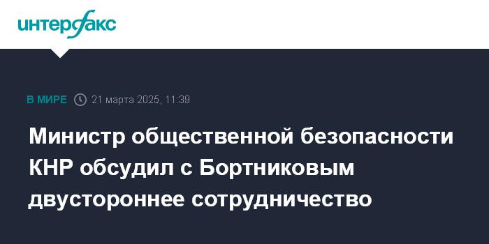 Министр общественной безопасности КНР обсудил с Бортниковым двустороннее сотрудничество