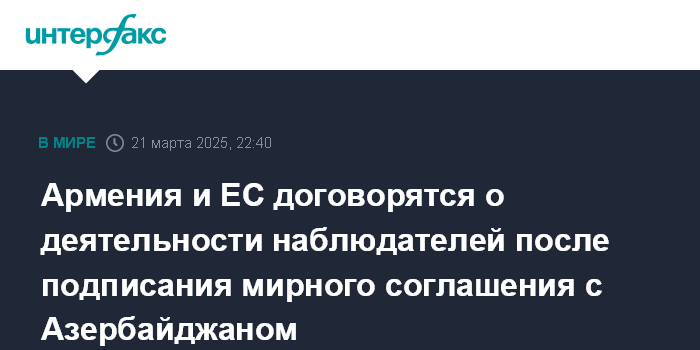 Армения и ЕС договорятся о деятельности наблюдателей после подписания мирного соглашения с Азербайджаном