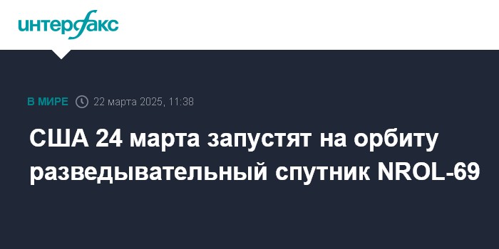 США 24 марта запустят на орбиту разведывательный спутник NROL-69