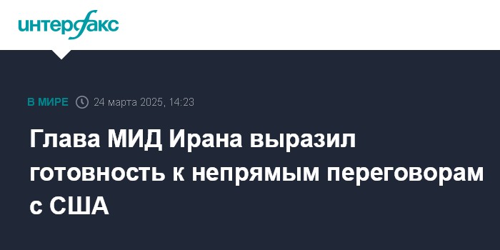 Москва. 24 марта. INTERFAX.RU - Глава МИД Ирана Аббас Аракчи заявил о возможности вести опосредованные переговоры с Вашингтоном и добавил, что Иран будет передавать США послания через посредников, сообщает агентство IRNA.