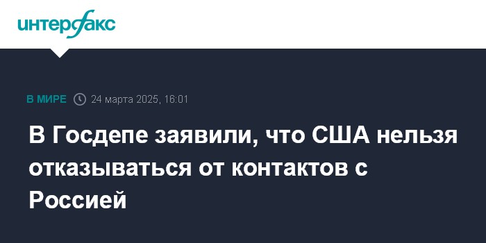 В Госдепе заявили, что США нельзя отказываться от контактов с Россией