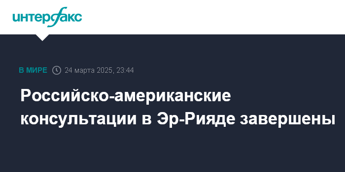 Москва. 24 марта. INTERFAX.RU - В МИД РФ заявили, что прошедшие в Эр-Рияде российско-американские консультации завершились.