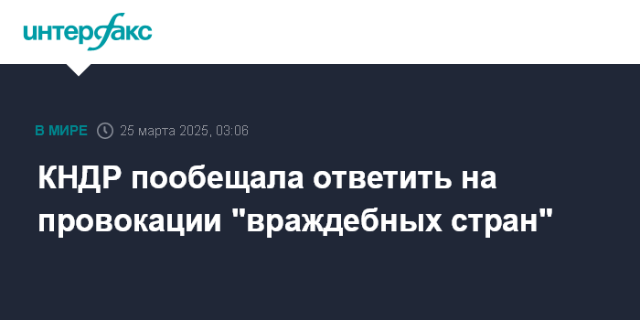 Москва. 25 марта. INTERFAX.RU - Северная Корея "решительно" ответит на любые провокации, заявление опубликовано Центральным телеграфным агентством Кореи (ЦТАК).