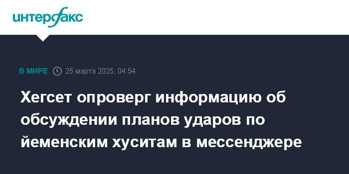 Ранее главный редактор The Atlantic Джеффри Голдберг сообщил в своем журнале, что случайно оказался в закрытом чате в мессенджере, где Хегсет, якобы, обсуждал планы по нанесению ударов по объектам хуситов в Йемене с вице-президентом страны Джей Ди Вэнсом, советником по нацбезопасности Майклом Уолтцем и госсекретарем Марко Рубио.