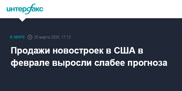 Продажи новостроек в США в феврале выросли слабее прогноза