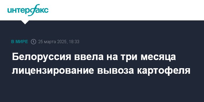 Москва. 25 марта. INTERFAX.RU - Правительство Белоруссии объявило, что ввело лицензирование вывоза картофеля из республики
