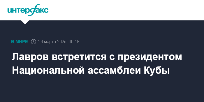 "26 марта запланирована встреча министра иностранных дел РФ Лаврова с одной из ключевых фигур кубинского высшего руководства, председателем Национальной ассамблеи народной власти и Государственного совета республики Кубы Эстебаном Ласо Эрнандесом. Он прибудет в Россию по приглашению Государственной думы Федерального собрания РФ", - сказала она на брифинге.
