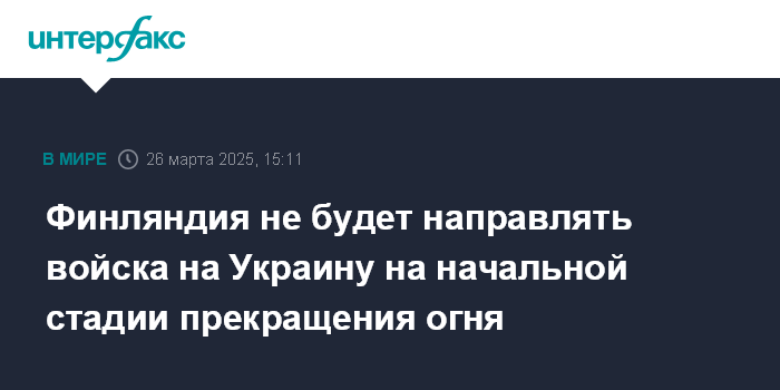 Финляндия не будет направлять войска на Украину на начальной стадии прекращения огня