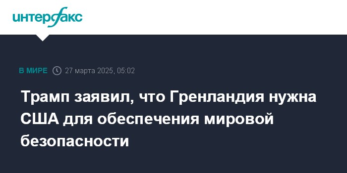 Москва. 27 марта. INTERFAX.RU - Мир, и в том числе Дания, заинтересован в том, чтобы Гренландия принадлежала Соединенным Штатам, заявил президент США Дональд Трамп.