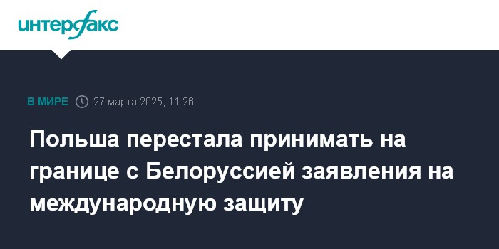 Москва. 27 марта. INTERFAX.RU - Польские пограничники перестали брать заявления на международную защиту от мигрантов на границе с Белоруссией, объявило Министерство внутренних дел и администрации Польши.