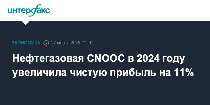 Нефтегазовая CNOOC в 2024 году увеличила чистую прибыль на 11%