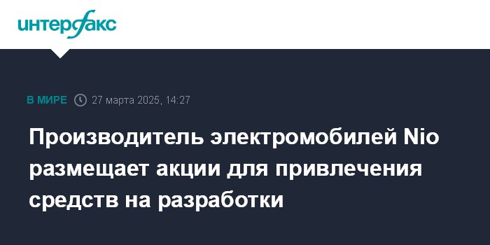 Москва. 27 марта. INTERFAX.RU - Китайский производитель электромобилей Nio Inc. размещает акции, чтобы привлечь средства на исследования и разработки.