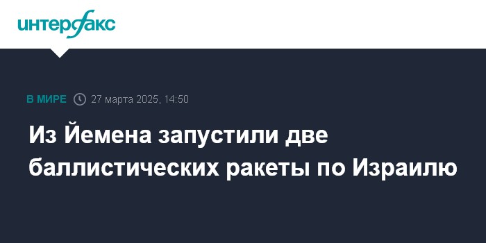 Москва. 27 марта. INTERFAX.RU - Удар двумя баллистическими ракетами нанесли в четверг с территории Йемена по Израилю, сообщает The Times of Israel.