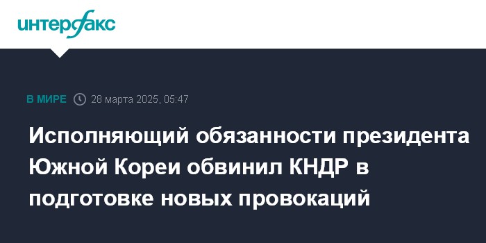 Исполняющий обязанности президента Южной Кореи обвинил КНДР в подготовке новых провокаций