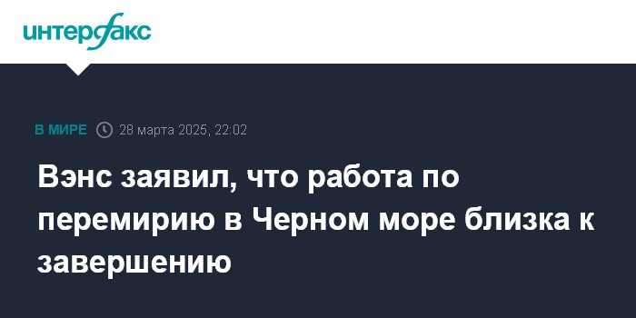 Москва. 28 марта. INTERFAX.RU - Вице-президент США Джей Ди Вэнс в пятницу заявил, что американской стороне почти удалось завершить процесс достижения перемирия для судоходства в Черном море.