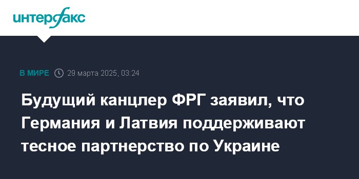 Москва. 29 марта. INTERFAX.RU - Партнерство между Германией и Латвией в рамках НАТО и ЕС имеет большое значение в деле поддержки Украины, заявил будущий канцлер ФРГ Фридрих Мерц по итогам беседы с премьер-министром Латвии Эвикой Силиней.