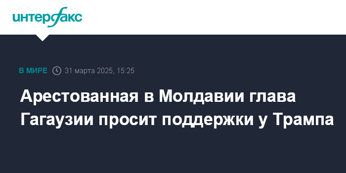 Москва. 31 марта. INTERFAX.RU - Глава Гагаузской автономии Молдавии Евгения Гуцул, арестованная по обвинению в получении незаконного финансирования от преступной группировки, в письме к президенту США Дональду Трампу попросила добиться ее освобождения.