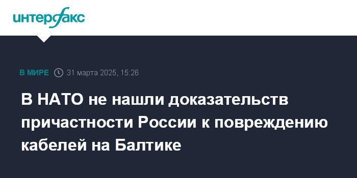 Москва. 31 марта. INTERFAX.RU - У союзников по НАТО пока нет доказательств того, что Россия причастна к инцидентам с повреждением подводных кабелей в Балтийском море, сообщает The Wall Street Journal со ссылкой на неназванных чиновников.