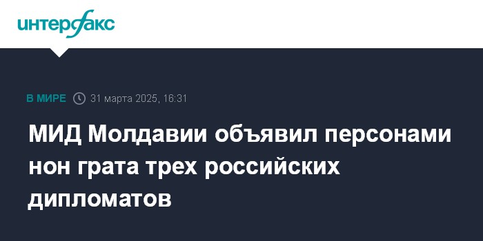 Москва. 31 марта. INTERFAX.RU - Министерство иностранных дел Молдавии объявило персонами нон грата трех сотрудников посольства РФ, которых оно обвинило в действиях, противоречащих статусу дипломата.