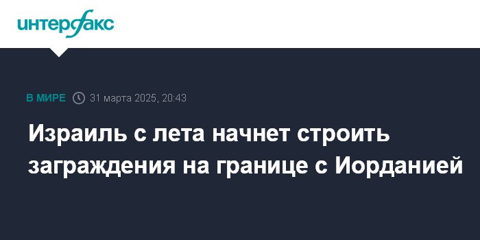 Москва. 31 марта. INTERFAX.RU - Израильские власти приступят к возведению новых барьеров на границе с Иорданией в июне, на строительство, как ожидается, уйдет три года, сообщает в понедельник The Times of Israel.