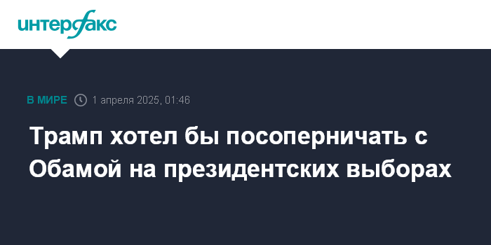 Москва. 1 апреля. INTERFAX.RU - Президент США Дональд Трамп пока не изучал возможность баллотироваться на третий срок, однако не отказался бы посоперничать на выборах с экс-президентом США Бараком Обамой.