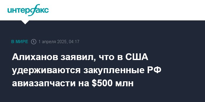 Алиханов заявил, что в США удерживаются закупленные РФ авиазапчасти на $500 млн