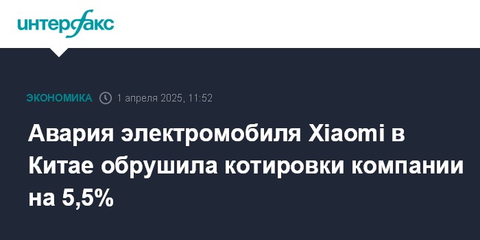 Авария электромобиля Xiaomi в Китае обрушила котировки компании на 5,5%