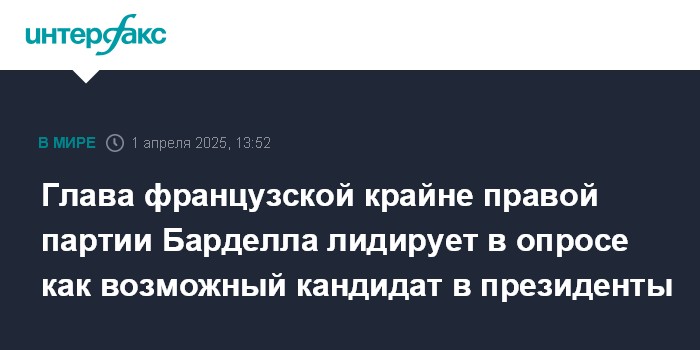 Глава французской крайне правой партии Барделла лидирует в опросе как возможный кандидат в президенты