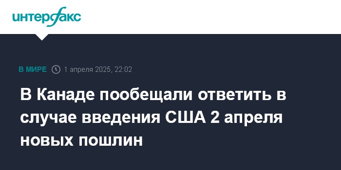 Москва. 1 апреля. INTERFAX.RU - Канадские власти не оставят без ответа новые пошлины США, которые американская администрация планирует ввести 2 апреля, заявил во вторник премьер Канады Марк Карни.