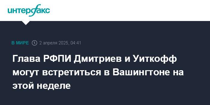 Глава РФПИ Дмитриев и Уиткофф могут встретиться в Вашингтоне на этой неделе