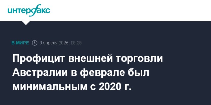 Москва. 3 апреля. INTERFAX.RU - Профицит внешней торговли Австралии в феврале опустился до минимального уровня с августа 2020 года.