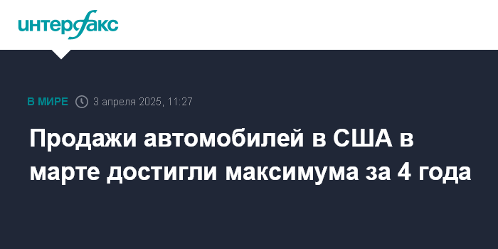 Москва. 3 апреля. INTERFAX.RU - Продажи легковых автомобилей в США в марте выросли на 13% по сравнению с тем же месяцем прошлого года - до 17,77 млн единиц в пересчете на годовые темпы, по данным исследовательской фирмы Wards Intelligence.