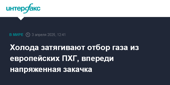 "Среднесуточный темп отбора газа в текущем сезоне (390,3 млн куб. м по состоянию на 31 марта) стал вторым максимальным за историю наблюдений. Он уступает только показателю сезона 2017/2018 года, когда в Европу пришли аномальные морозы. Однако в этот раз европейские страны с климатическими вызовами не сталкивались. Отметим, что нетто-отбор газа в марте 2025 года на 40,9% превысил показатель марта прошлого года", - отмечает компания.