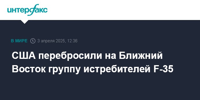 Москва. 3 апреля. INTERFAX.RU - Соединенные Штаты разместили на Ближнем Востоке группу истребителей пятого поколения F-35. Об этом сообщило издание Military Times, ссылаясь на источники в американском Конгрессе.
