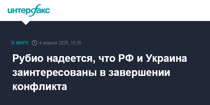 Москва. 4 апреля. INTERFAX.RU - Госсекретарь США Марко Рубио выразил надежду на то, что стороны конфликта на Украине не затягивают заключение перемирия и заинтересованы в завершении конфликта.