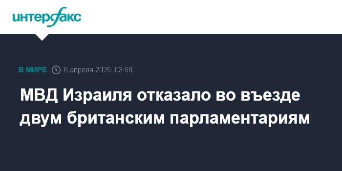 Москва. 6 апреля. INTERFAX.RU - Министерство внутренних дел Израиля запретило въезд в страну двум членам британского парламента от Лейбористской партии Абтисаму Мухамеду и Юань Яну, прибывшим в Тель-Авив в сопровождении двух помощников, сообщила The Times of Israel.