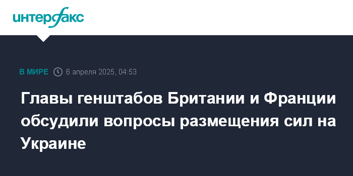 Главы генштабов Британии и Франции обсудили вопросы размещения сил на Украине