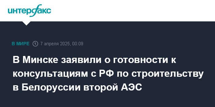 В Минске заявили о готовности к консультациям с РФ по строительству в Белоруссии второй АЭС