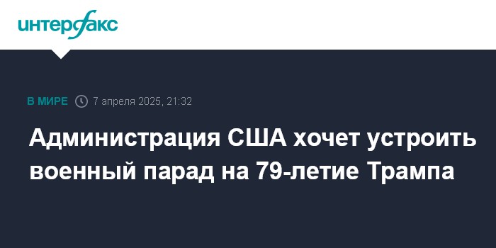 Москва. 7 апреля. INTERFAX.RU - Власти США хотят провести на улицах Вашингтона парад, чтобы отпраздновать день рождения президента страны Трампа, сообщает в понедельник The Hill.