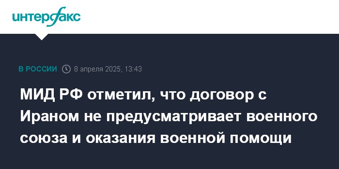МИД РФ отметил, что договор с Ираном не предусматривает военного союза и оказания военной помощи