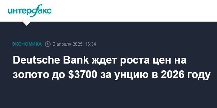 Москва. 8 апреля. INTERFAX.RU - Аналитики Deutsche Bank улучшили прогнозы цен на золото на 2025 и 2026 годы на фоне геополитической и внешнеторговой неопределенности, способствующей повышенному спросу за защитные активы.
