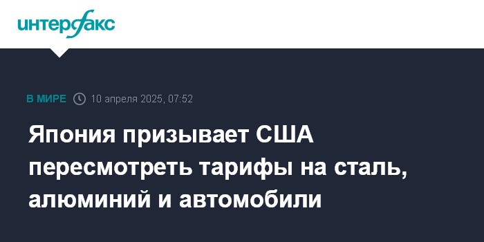 Москва. 10 апреля. INTERFAX.RU - Япония приветствует приостановку президентом США Дональдом Трампом на 90 дней повышения пошлин на импорт в отношении ряда стран, однако призывает Вашингтон пересмотреть дополнительные 25-процентные пошлины на сталь, алюминий и автопром, сообщил генеральный секретарь японского кабинета министров Ёсимаса Хаяси.
