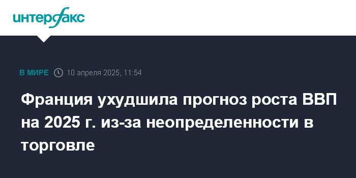 Москва. 10 апреля. INTERFAX.RU - Правительство Франции ухудшило прогноз роста экономики на 2025 год, отметив возможные последствия торговой войны, начатой президентом США Дональдом Трампом.
