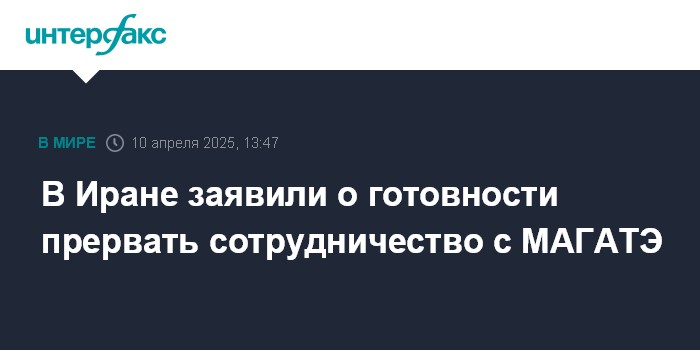 Москва. 10 апреля. INTERFAX.RU - Иран рассматривает возможность прекращения сотрудничества с Международным агентством по атомной энергии (МАГАТЭ) в случае сохранения угроз от других стран, заявил в четверг советник руководителя Исламской республики Али Шамхани.