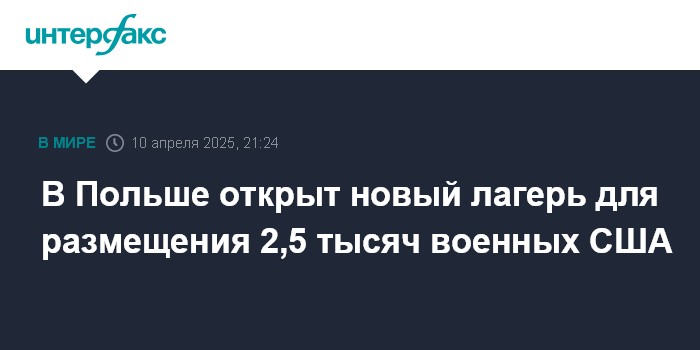 Москва. 10 апреля. INTERFAX.RU - В Польше ввели в эксплуатацию новый лагерь для размещения американских военнослужащих, сообщило польское Минобороны.
