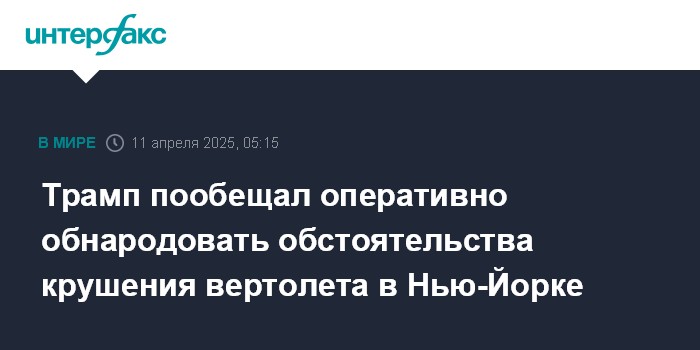 Трамп пообещал оперативно обнародовать обстоятельства крушения вертолета в Нью-Йорке