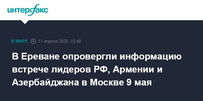 В Ереване опровергли информацию встрече лидеров РФ, Армении и Азербайджана в Москве 9 мая