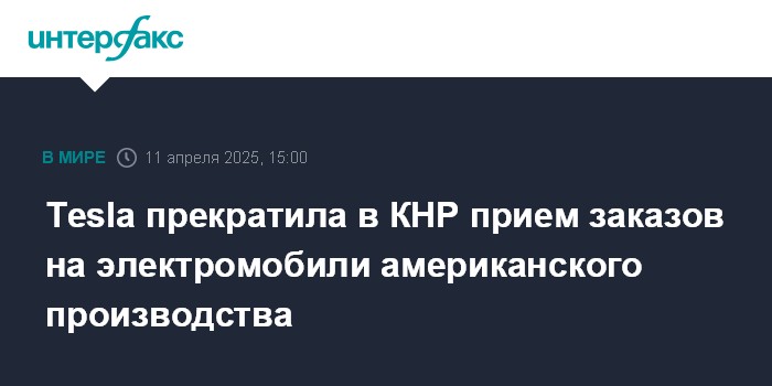 Москва. 11 апреля. INTERFAX.RU - Американская Tesla прекратила прием заказов на седаны Model S и внедорожники Model X в Китае, согласно ее сайту.